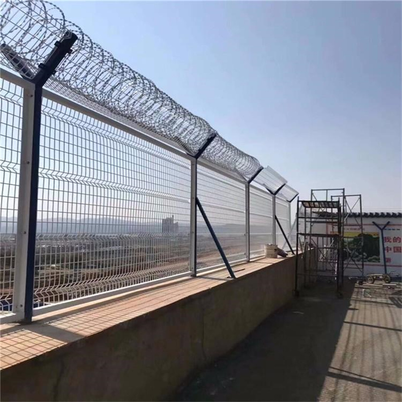 監獄護欄網是一款為高機密高安全場所設計新型護欄網又稱監獄防護網或監獄隔離柵,它主要是采用先進高強度的刀片刺網與優質護欄網的結合體,由V型支架立拄,加強型焊接片網,安全防盜連接件和刀片刺網組成,既安全環保又經久耐用。刀片刺網是一種新型防護網,由銳利尖角鍍鋅鋼板或不銹鋼薄板做刀片,鋼絲做芯線組合而成的防護器材.監獄護欄網刀片刺網具有嚇阻、防翻越等效果,材質堅硬,高強度,高張力,造型設計獨特,不宜觸摸,因而能達到極好的防護隔離效果,監獄護欄網采用低碳鋼絲焊接而成的網片、立柱、刺鐵絲(可選)、斜撐(可選)連接而成。監獄護欄網具有美觀、大方、防腐性好、易保養、防攀爬能力強。主要適用于監獄,機場,軍工企業周圍的隔離防護,美化及防翻越工程。本產品采用組裝式整體框架結構,產品美觀,有利于施工,安裝方便,快捷的特點.特殊規格我們公司可加工定做!