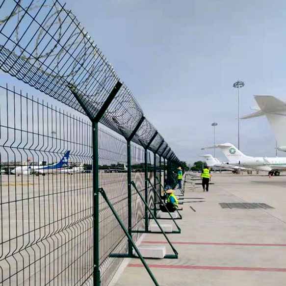 機(jī)場隔離網(wǎng)主要用于機(jī)場防護(hù)使用,產(chǎn)品選用優(yōu)級低碳鋼絲、鋁鎂合金絲,噴塑。經(jīng)過編焊而成;網(wǎng)格結(jié)構(gòu)簡練、便于運(yùn)輸、安裝不受地形