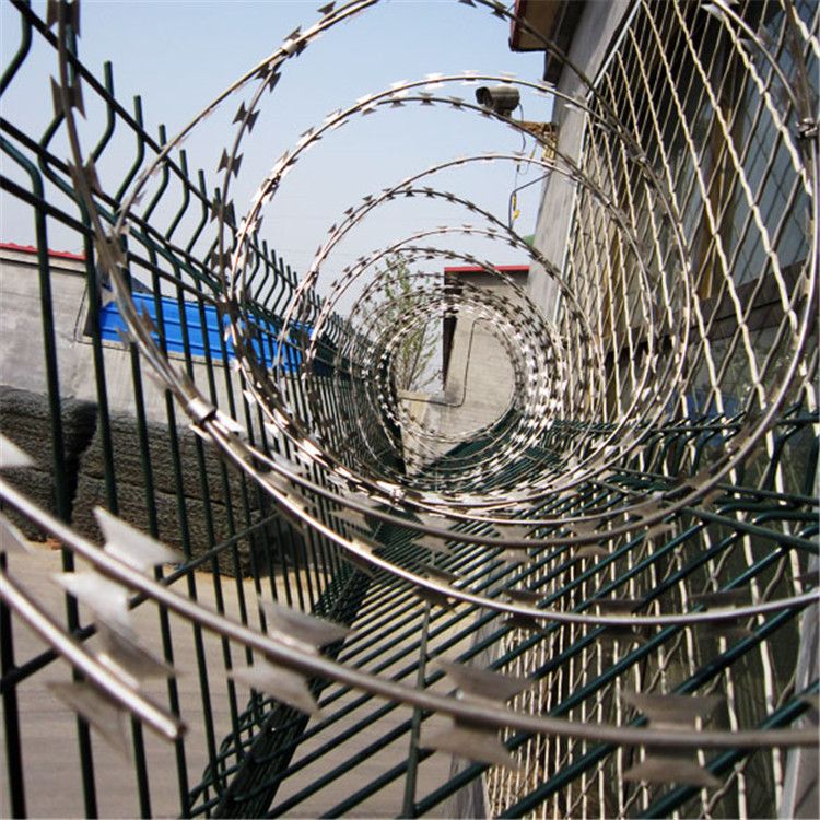 刀片刺網又名刮刀型刺絲,是一種發展起來的防護、隔離能力較強的新型產品。鋒利的刀型刺由雙線扣裝后成蛇腹狀,既美觀又讓人不寒而栗。起到了很好的阻嚇作用。同時該產品具有美觀、防阻效果好、施工便利等優點。