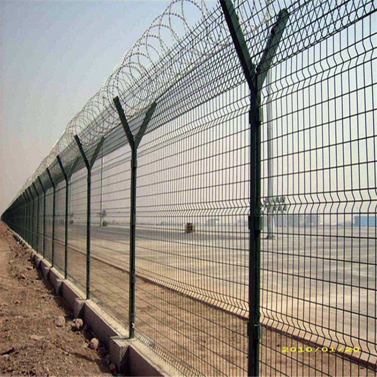 機(jī)場護(hù)欄網(wǎng)因為具有美觀、實用、方便運輸和安裝等特點,目前被社會普遍應(yīng)用。而且如果能在機(jī)場護(hù)欄網(wǎng)頂部加上刀片刺絲或者刀片刺繩后又進(jìn)一步的增強(qiáng)了安全防護(hù)性能。普通的機(jī)場護(hù)欄網(wǎng)大多都是采用電鍍、熱鍍、噴塑、浸塑等防腐形式,此方法具有很好的防老化、防曬等特點。