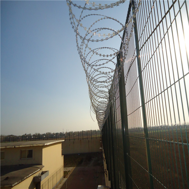 看守所滾刀刺網產品詳情又名刮型絲,是一種發展起來的防護、隔離能力較強的新型防護網產品。鋒利的型由雙線扣裝后成蛇腹狀,既美觀又讓人不寒而栗。起到了很好的阻嚇作用。同時該產品具有美觀、防阻效果好、施工便利等優點。