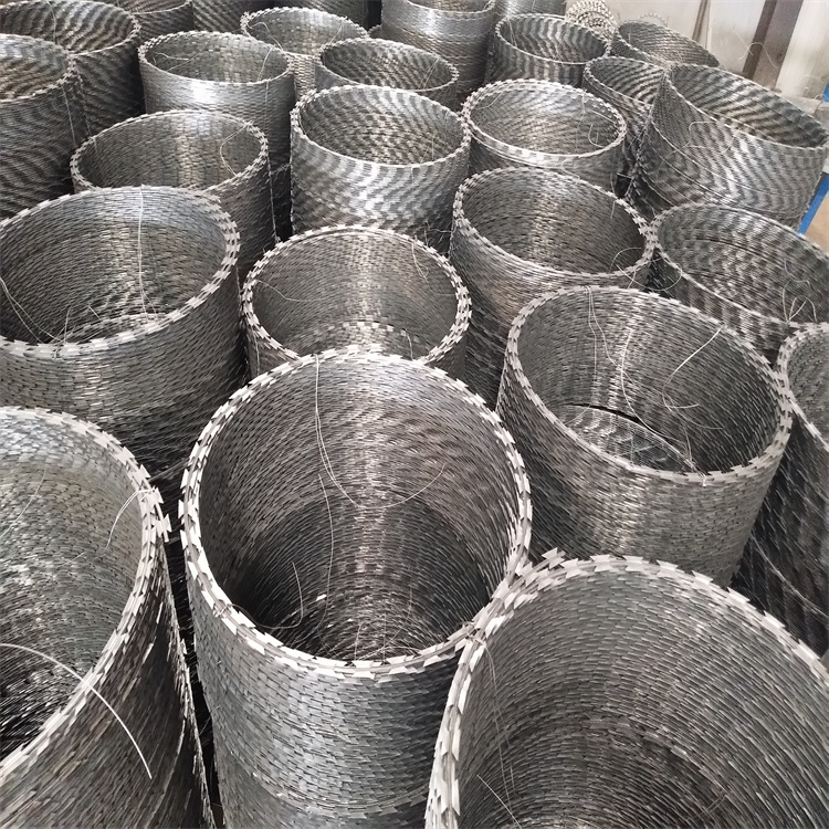 刀片刺繩也稱為刀片刺絲、刀片刺網,是一種新型護欄網產品。它具有嚇阻效果好、美觀、施工便利,經濟實用等優異特點。主要用于園林公寓,機關單位,監獄,哨所,邊防等的圈禁防護。刀片刺網由熱鍍鋅鋼板或不銹鋼薄板沖壓出尖銳的刀片狀,高張力鍍鋅鋼絲或者不銹鋼絲做芯線組合而成的阻絕器材。由于刺網造形獨特不易觸摸,因而能達到極好的防護隔離效果。產品的主要材質有鍍鋅板和不銹鋼板。