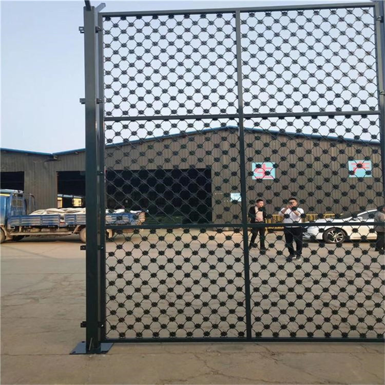 看守所加高圍墻網 又稱作“Y型安全防御護網”和機場護欄網通用,是由V型支架立柱,加強型焊接片網,安全防盜連接件和熱鍍鋅刀片刺籠組成強度和安全防御性級別很高。近年來,被廣泛應用在監獄,軍事基地等高安全場所。注:如果在監獄護欄網頂部加裝刀片刺絲、刀片刺繩后又很好的增強了安全防護性能。采用電鍍、熱鍍、噴塑、浸塑等防腐形式,具有很好的抗老化、抗曬、耐候等特點。其產品造型美觀、花色多樣,既起到圍欄作用,又起到美化作用。由于具有安全性高、防攀爬能力好,網片連接方式采用特制SBS緊扣件,有效防止人為的破壞性拆卸,橫向四道折彎加強筋,使網面強度顯著增加。