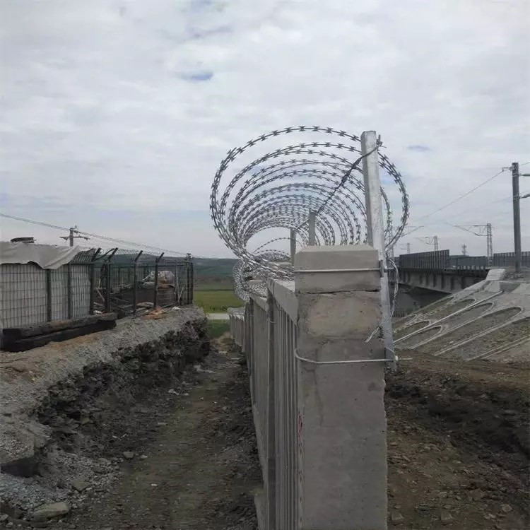 螺旋型交叉防腐形式有電鍍、熱鍍。平板式刀片刺網是刀片刺網的一種新的應用方式,它是將單圈式刀片刺網平壓成板狀,或將兩件單圈刺網壓平后交叉相錯使用,外表美觀而且實用,可與直線式刀片刺網搭配使用,構成下直線上平板的防護墻,或僅用平板式刺網構成防護墻。主要適用于小區、倉庫、畜牧廠、農場、礦山、重地等。
