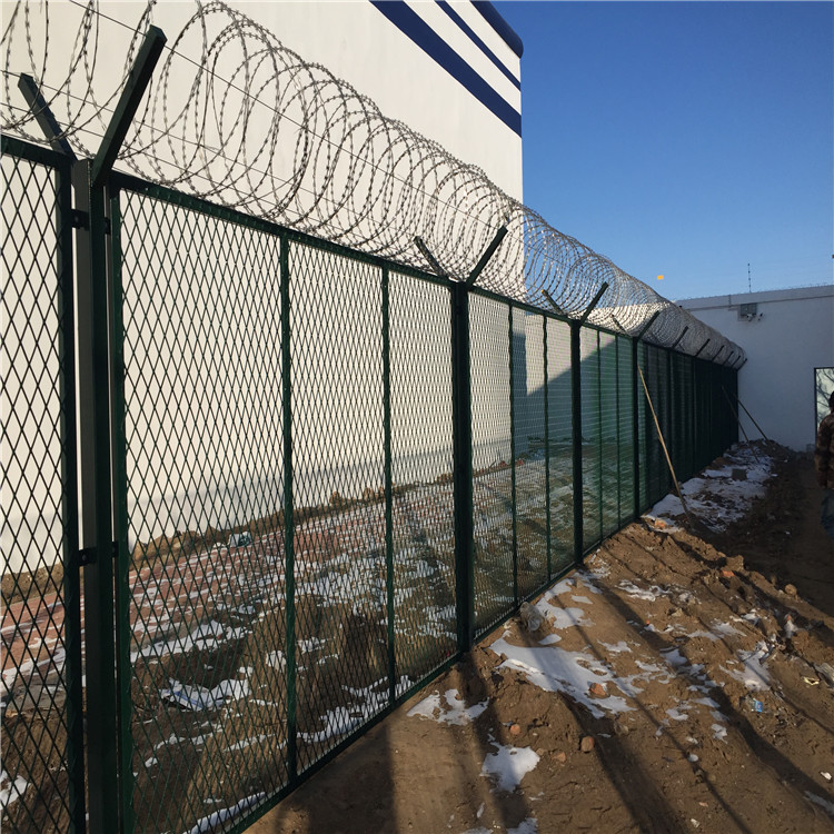 頂部結(jié)構(gòu):這是最關(guān)鍵的部分。通常設(shè)有向內(nèi)或向外傾斜的蛇腹形刀刺網(wǎng),或呈“Y”形的防攀爬倒刺柵欄。這是最有效的物理和心理威懾。