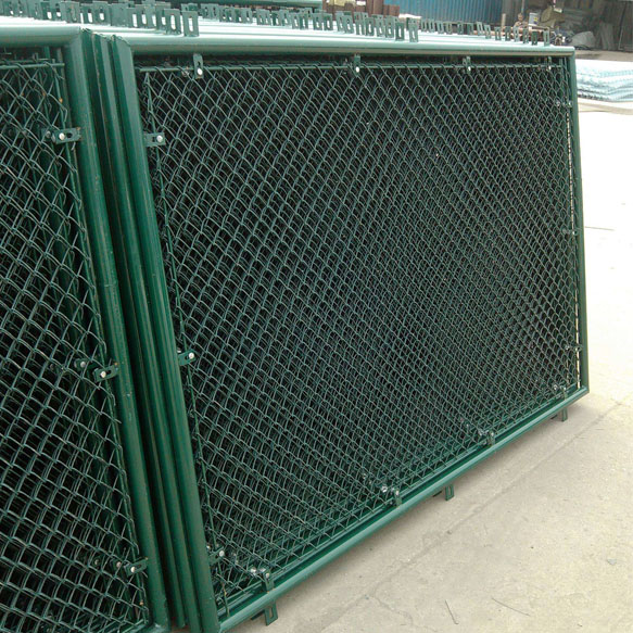 球場(chǎng)圍網(wǎng)由圍網(wǎng)框架+整體式拉網(wǎng)模式,結(jié)構(gòu)簡(jiǎn)單耐用,整體效果好,性價(jià)比高。圍網(wǎng)的骨架通過(guò)直通、三通、四通等專用扣件將立柱和橫梁連成整體呈”口”或”日”字型,用高強(qiáng)度螺栓固定,圍網(wǎng)高度為4000mm,兩立柱間距三米左右;待圍網(wǎng)骨架搭建成型后,現(xiàn)場(chǎng)整體張拉圍網(wǎng),并用扁鐵固定在骨架的立柱及橫梁上。【配備1個(gè)1200mm*2000mm的單開式框架門】