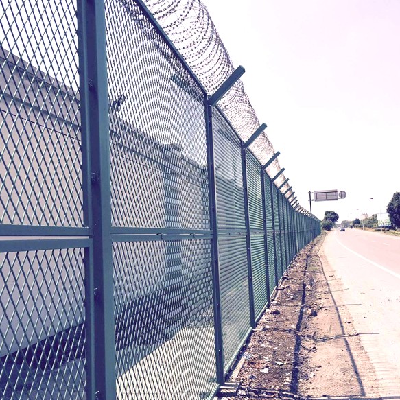 監(jiān)獄監(jiān)管區(qū)隔離網(wǎng)中的Y型立柱監(jiān)獄隔離網(wǎng)又稱作“Y型安全防御護(hù)網(wǎng)”,與機(jī)場(chǎng)護(hù)欄網(wǎng)通用,都是由V型支架立柱,加強(qiáng)型焊接片網(wǎng),安全防盜連接件和熱鍍鋅刀片刺籠組成強(qiáng)度和安全防御性級(jí)別很高的產(chǎn)品。