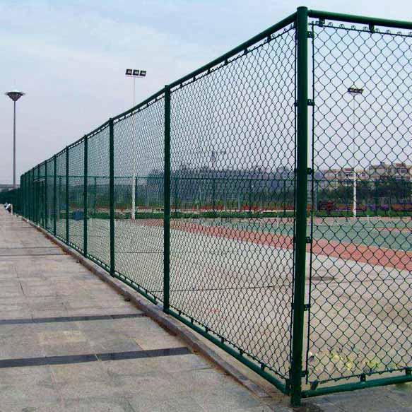 球場圍欄采用進(jìn)口PVC材質(zhì)包塑鐵絲網(wǎng)做網(wǎng)球場的圍網(wǎng),既可節(jié)省每年為普通鐵絲重新油漆的費(fèi)用