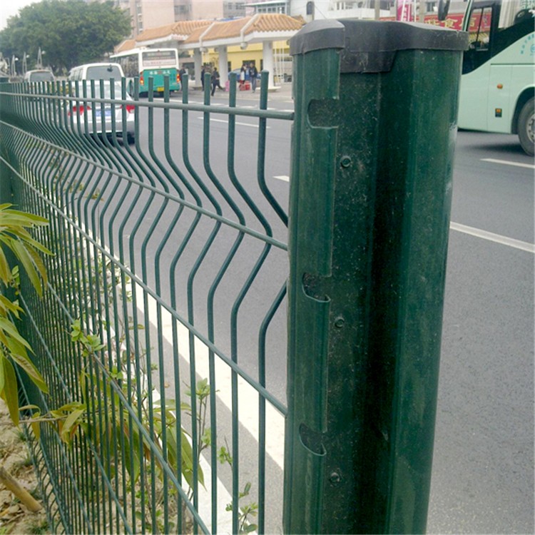 公路隔離護欄網和圈地隔離網使用的規格尺寸差不太多,通常選用高度為1800mm,寬度3000mm,立柱采用φ48mm的浸塑鋼管,絲徑在φ4mm左右,網孔在80*160mm,顏色多為綠色,網片和立柱靠螺絲和各類特殊的塑料或鐵質的卡子連接(所有螺絲均為自動防盜),連接方便簡單快捷。【以上規格為常用規格,艾瑞公司頁也可根據客戶圖紙要求加工定制】
